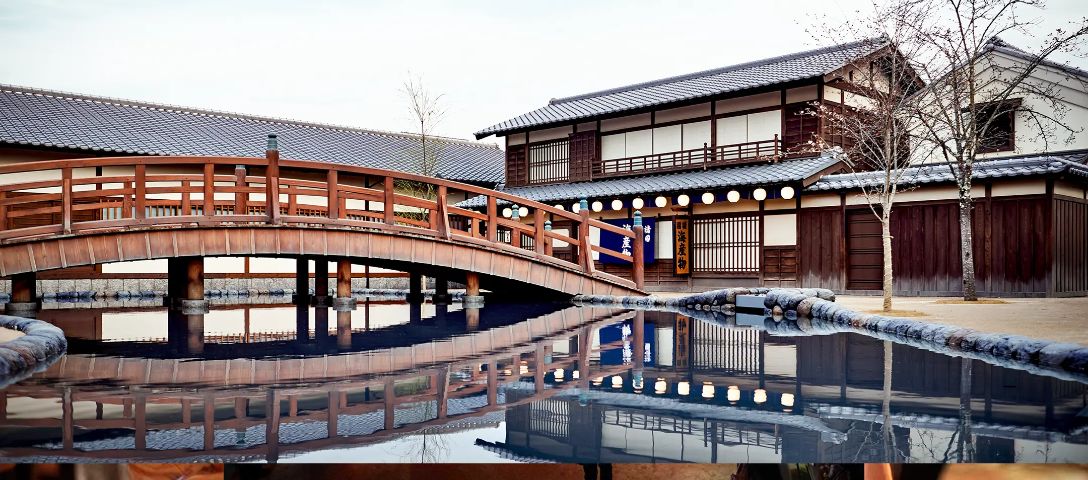 유야를 비롯한 에도의 건물이 늘어선 풍정 있는 일각. 앞으로 가는 다리와 함께 밤에는 더욱 정서적인 경관을 즐길 수 있다.
