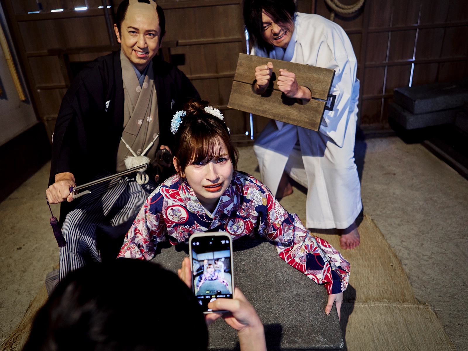 밤에 열리는, 어른만이 발을 디딘 특별 공간. 에도 시대에 헤매어진 당신은 어떤 사건의 혐의를 받고 고문 저택으로 이끌려 간다. 저택 속에서 기다리는 것은 촬영소의 미술 스탭이 재현한 고문 기구의 여러가지. 실제로 고문에 걸리는 체험을 통해, 에도 시대의 조사와 사법의 어둠의 역사를 배우는 몰입형 체험. 아프지 않습니다.